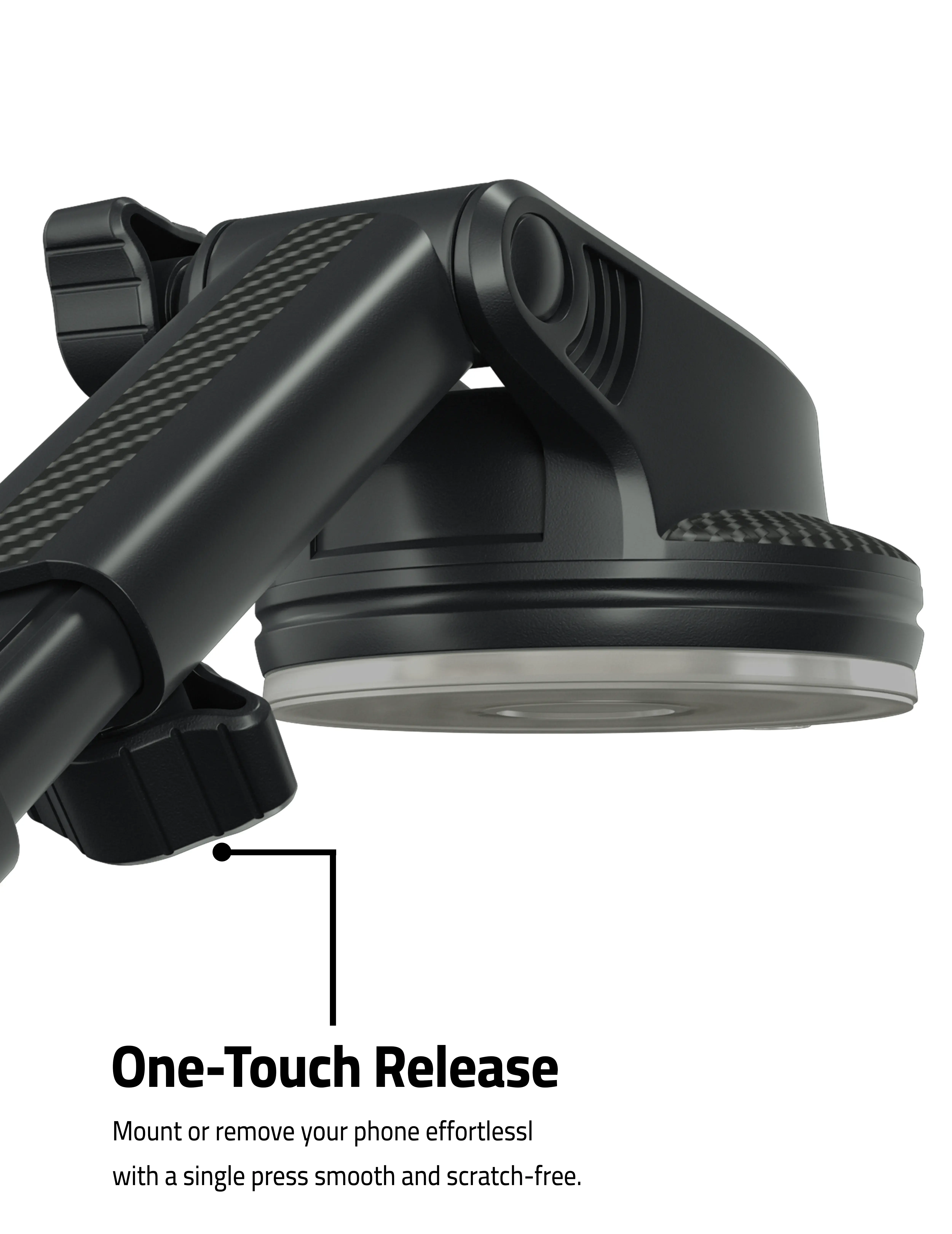 An auto-grip that locks your phone securely and keeps it steady—even during sudden brakes.
