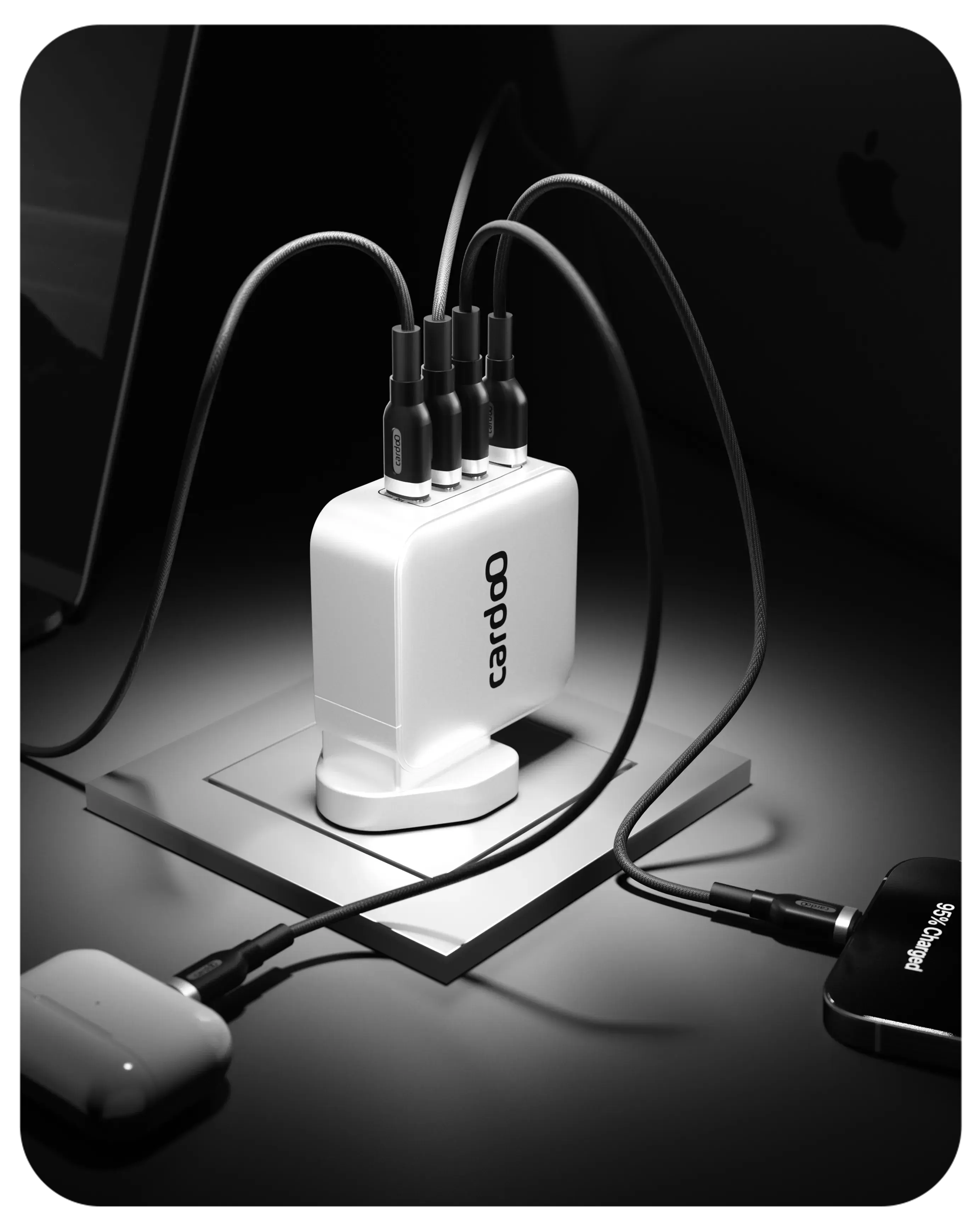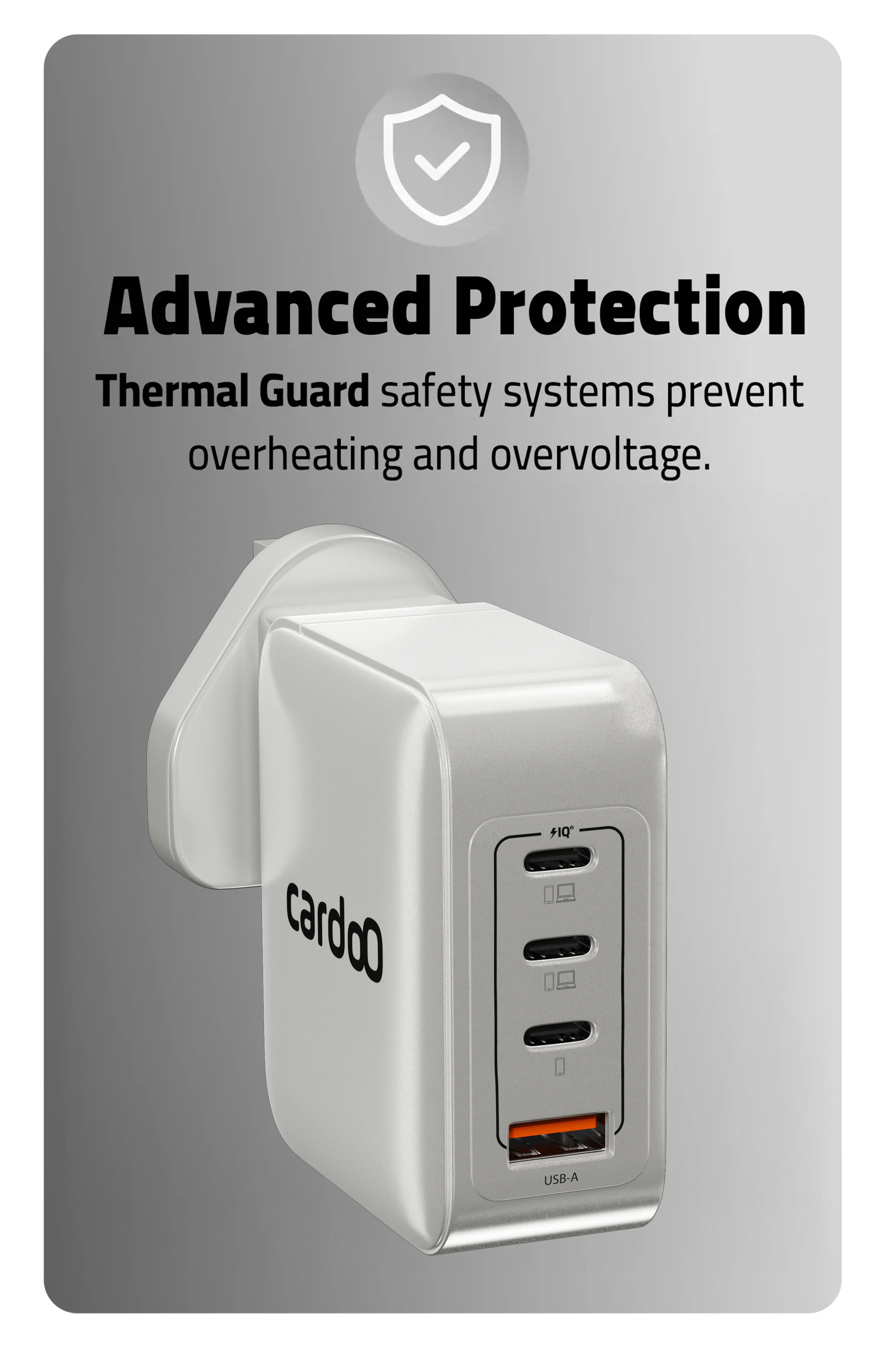 3 x USB-C PD, 1 x USB-A IQ 3.0 port to power up to 4 devices with high speed and safety.