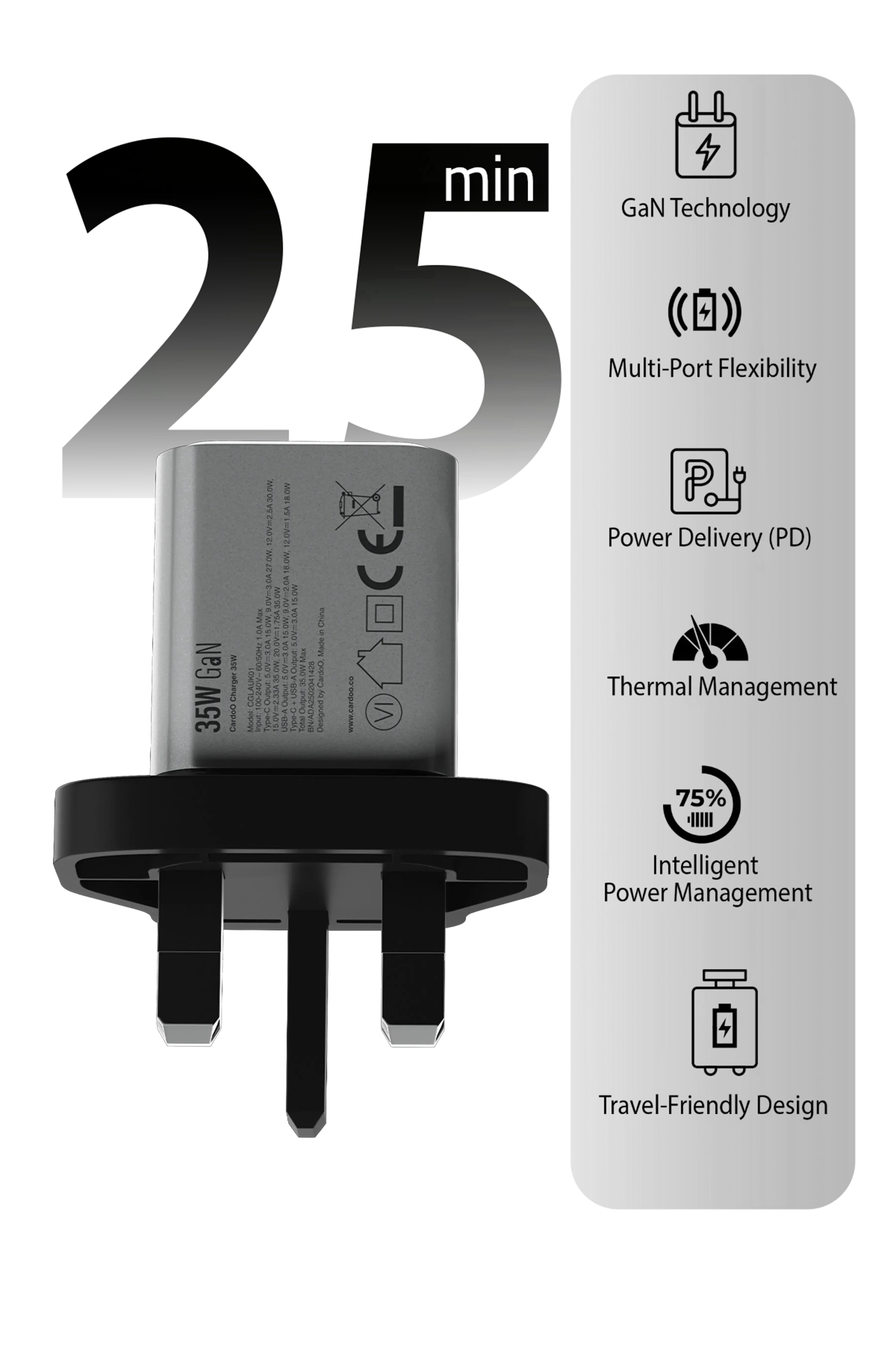 With advanced GaN technology, power up your devices faster and more efficiently—no overheating, no damage to your battery.