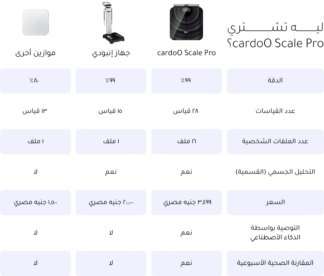 تطبيق كاردو مش بس بيجمع البيانات – بيساعدك تفهمها. وتقارن بينها في وقتين مختلفين وكمان تشوف ال graphs لكل تفصيلة بشكل يومي، اسبوعي او شهري .وبخوارزمية الـ AI هتوصلك توصيات صحية مخصصة ليك، ولما تحدد أهدافك هتوصلك نصائح تساعدك تحققها بسهولة.